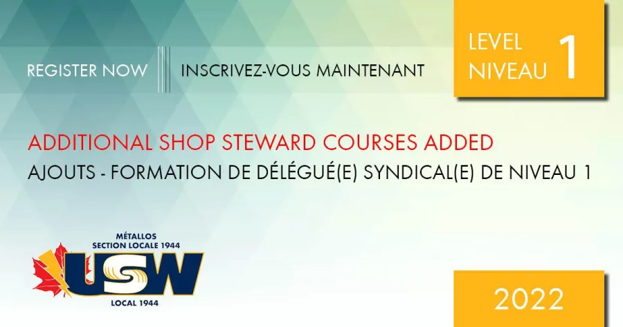 The course is open to all members in good standing, unless you took Shop Steward Level 1 training already in 2021. |